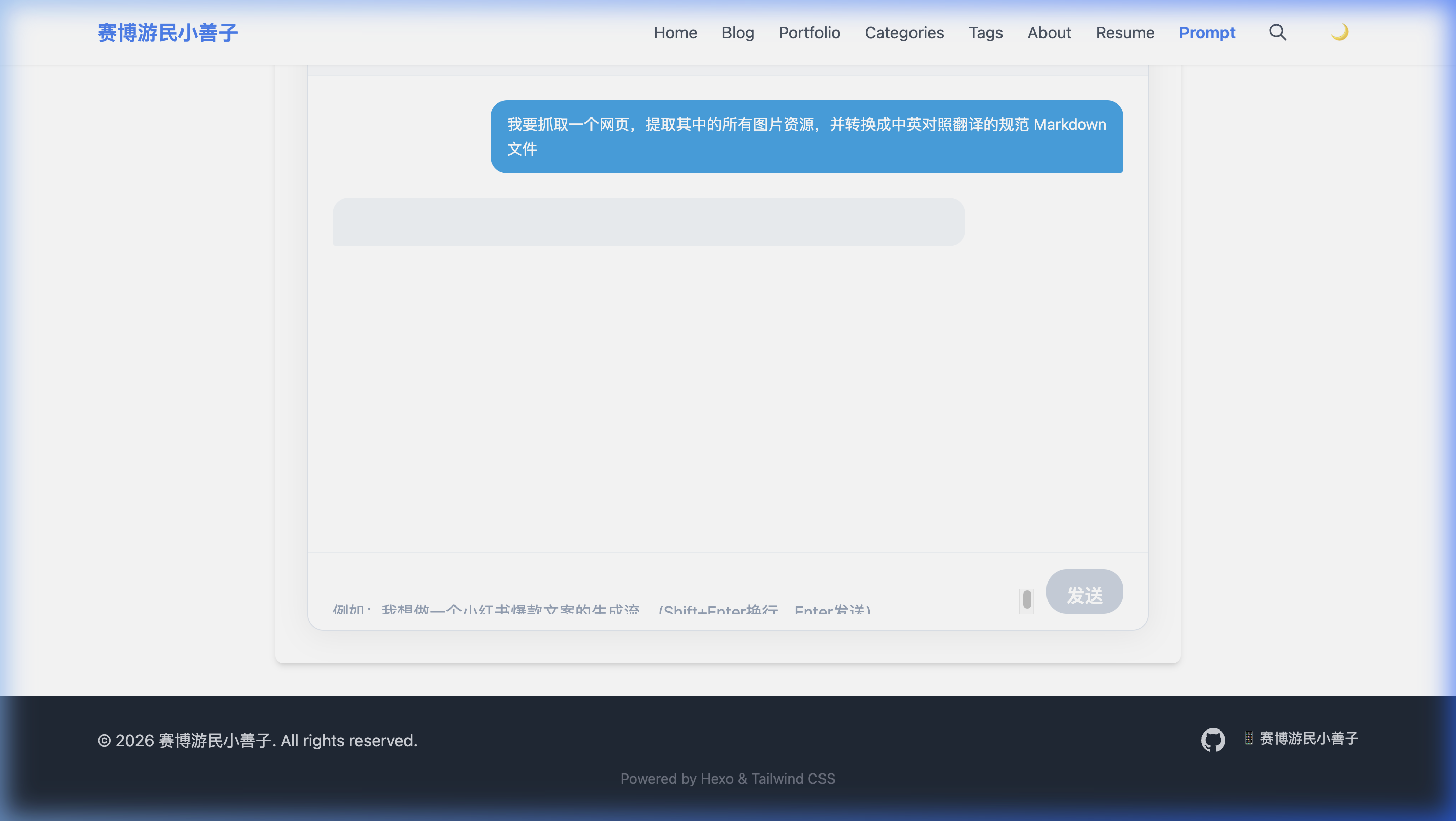 👉 访问方式极其简单:点击博客顶部导航栏的 [Prompt] 标签,即可立刻免登录体验!